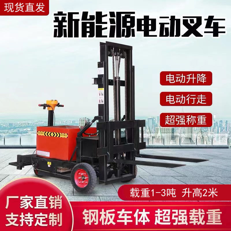 精河县小型电动叉车1吨站驾式2吨液压升高铲车全自动仓储堆高车
